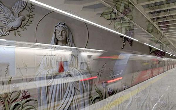 Téhéran s’est dotée d’une nouvelle station de métro pas comme les autres : pensée comme une œuvre d'art, elle met à l'honneur la Vierge Marie dans un pays où l'islam chiite est religion d'Etat. Cette figure, aussi bien vénérée parmi les chrétiens que les musulmans, est représentée les yeux fermés en train de prier, sur un bas-relief dans les couloirs de la station Maryam Moghaddas (« Sainte-Marie » en persan).